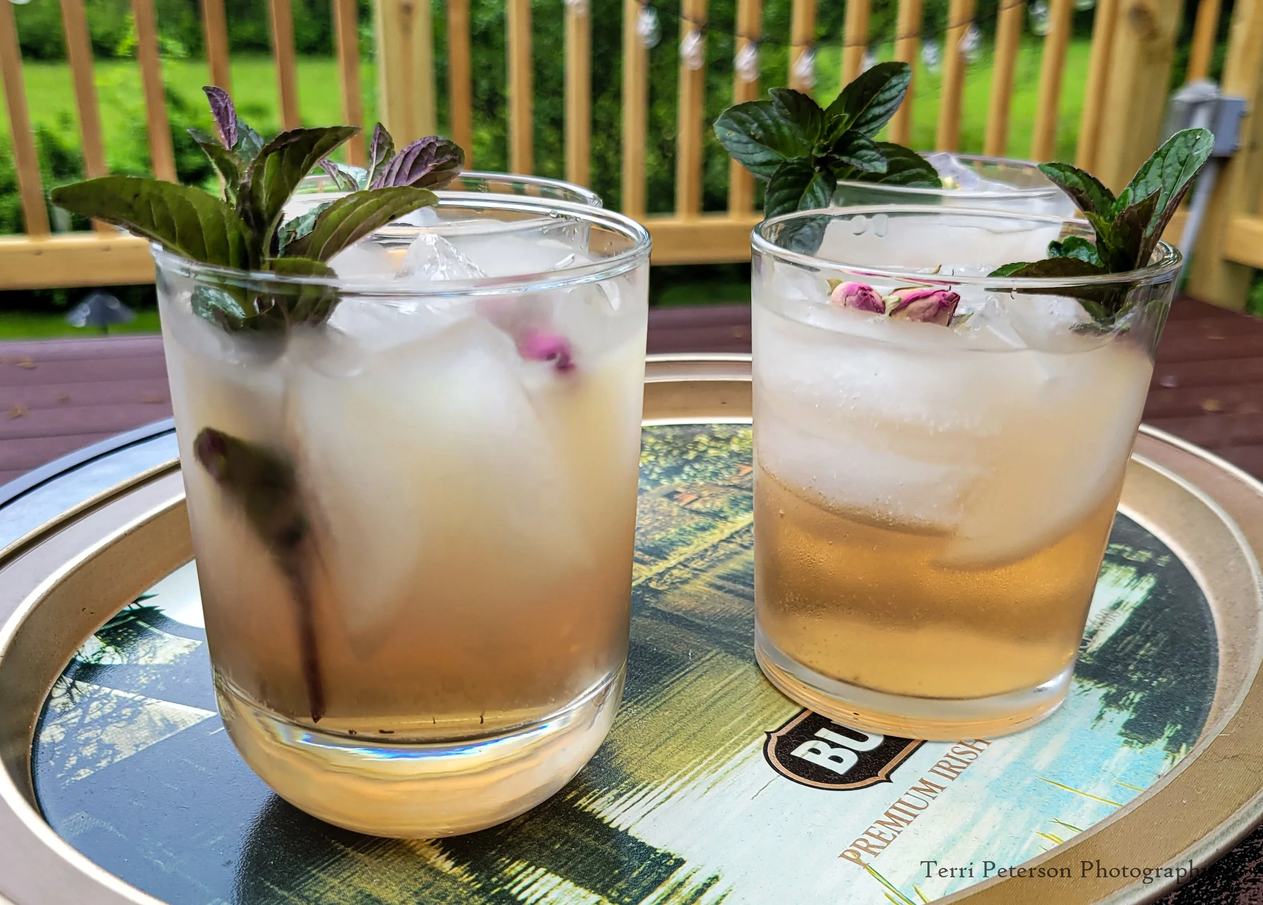 4. Add a splash of limoncello and the drops of black pepper tincture. Stir once, and garnish with the mint sprig, rosebuds, or a lemon twist. Enjoy!